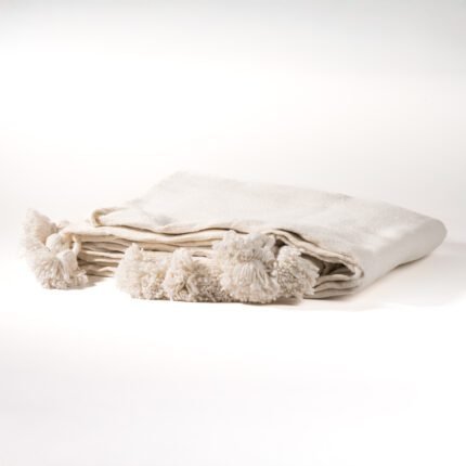 Plaid à Pompons XL – Blanc