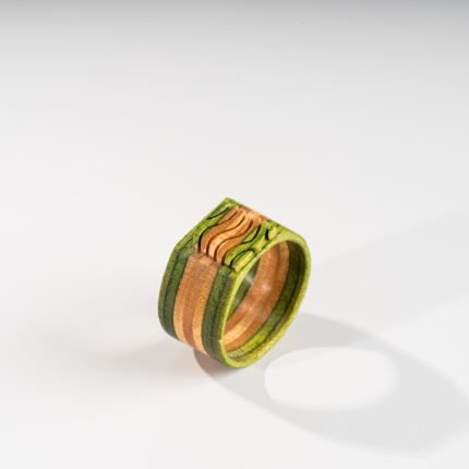 Adoptez un style unique tout en soutenant une démarche écologique avec la bague en bois de skateboard recyclé 7PLIS.