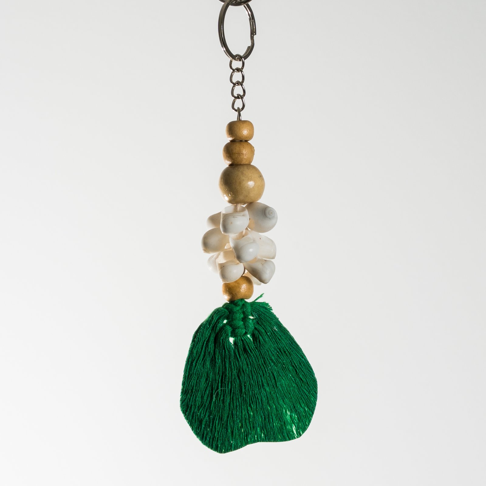 Porte-clés artisanal en coquillages et feuille tressée – Bali